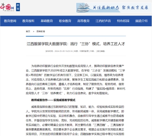 中国网||江西服装学院黄色网站免费在线观看践行“三协”模式,培养工匠人才