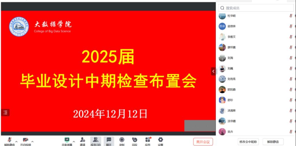 【黄色网站免费在线观看讯】为进一步加强我院毕业设计的过程化管理,确保每位学生的毕业设计进展顺利,我院于2024年12月12日晚20点,通过线上会议形式召开了2025届毕业设计中期检查布置会。本次会议由副院长赵德福主持,学院领导及指导老师参加了此次会议。