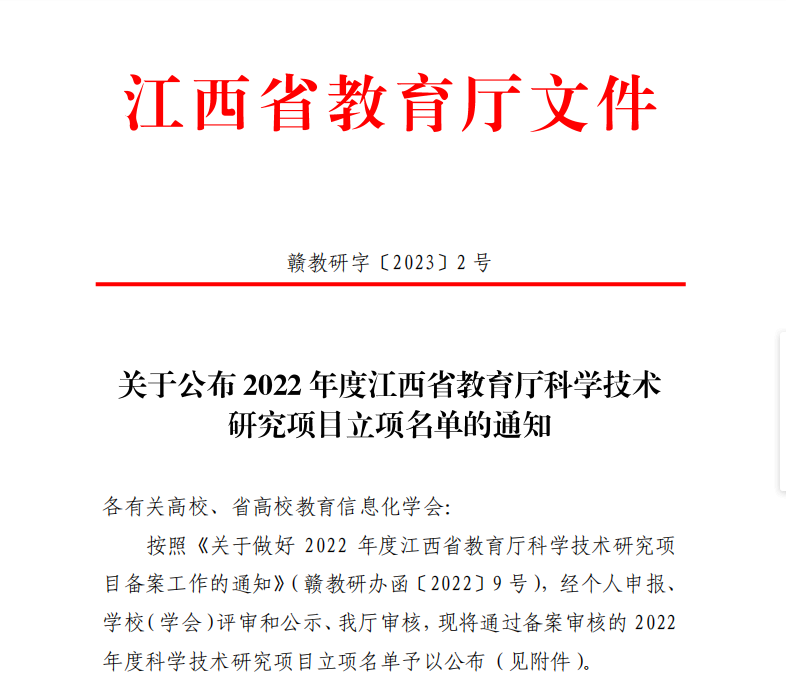 喜报||我院四位教师申报2022年度江西省教育厅科学技术研究项目获批立项