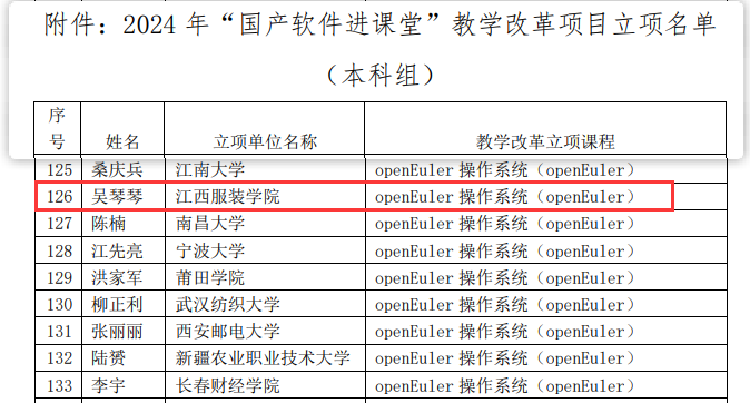 【黄色网站免费在线观看讯】近期,中国软件行业协会发布了2024年“国产软件进课堂”教学改革项目立项名单,共有282个课程入选,其中本科组200个。我院吴琴琴老师主持的项目《openEuler 操作系统(openEuler)》获批立项。