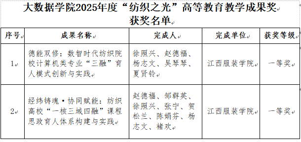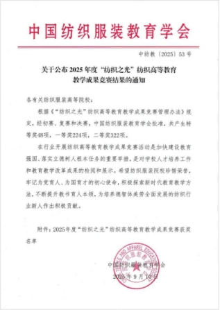 喜报||我院2项成果荣获2025年“纺织之光”高等教育教学成果奖一等奖