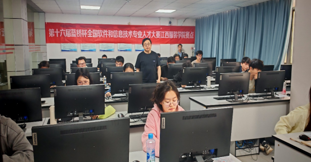 作为省内重要赛点之一,我院开放东2栋7楼机房作为主赛场,为参赛选手提供了高标准的竞赛环境。比赛现场气氛紧张有序,选手们全神贯注,凭借扎实的编程功底和灵活的解题思路,在代码编写、算法优化、系统设计等环节中展现了出色的专业素养。刘巍副院长在巡视赛场时强调:“蓝桥杯不仅是技术比拼的舞台,更是检验实践能力、激发创新思维的重要平台。希望同学们赛出水平、赛出风采!”