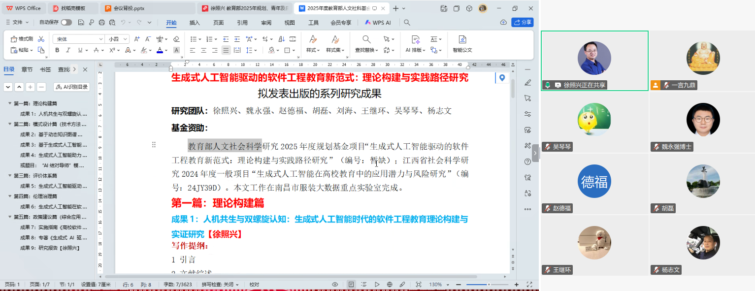 关于课题预期成果,徐照兴教授明确了具体产出形式:包括1部研究专著、1份涵盖11个实操场景的“AI+软件工程”教学融合指南,以及若干篇发表于高水平期刊的学术论文,全面覆盖理论研究、实践指导与行业参考。