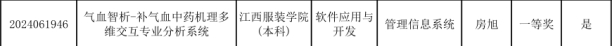 经过激烈的角逐中,我院参赛的4项作品中2项作品分别获得江西省级赛一、三等奖。一等奖是由大数据学院院长徐照兴教授和柳鹏老师指导的《气血智析-补气血中药机理多维交互专业分析系统》作品,被上推参加7月下旬在山东大学举办的国赛,参赛学生是21数据科学1班房旭、徐荣桂、赖林峰。三等奖是由舒阳霞老师指导的《基于微信小程序的国潮文化科普与推广系统》,参赛学生是20软件本科1班郭菲。