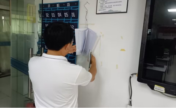 最后在9月10日,张学林副院长组织教研室主任、实践教学秘书成立核查小组,为确保万无一失,他再次亲临现场,对前阶段的实践教学条件保障工作进行了核查,发现个别实验室温馨提示掉落在地、实验实训室旧的安全卫生检查记录本没有更换,东2栋705、706室学生座椅没有放在座位,针对问题,要求实践教学秘书立马整改到位。