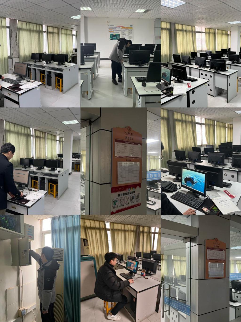 本次检查由张学林副院长亲自带队,对机房的各个方面进行了细致入微的审查。首先,检查团队重点检查了机房的环境外设情况,包括机房门的开合情况、锁具使用状况、灯管亮度以及窗户的防水防尘密封性能。他们确保机房环境稳定,满足学生日常学习和科研的需求。其次,检查团队对机房的地面和天花板进行了详细检查,查看了机房墙体是否存在渗水、漏水和裂缝等情况。同时,他们还对机房的清洁情况进行了检查,确保机房内没有杂物,为学生提供一个整洁舒适的学习环境。在设备配套方面,检查团队逐一核对了机房内的电脑主机、鼠标、鼠标垫、键盘、椅子等设备的配备情况,确保每一台设备都完好无损,能够满足学生的学习和科研需求。最后,检查团队对机房设备的运行情况进行了全面检查,重点检查了机房主机、显示屏、UPS、配电柜等设备的运行状态。他们特别关注了设备的温度、噪音等关键指标,并进行了记录和分析。对于发现的问题,检查团队及时提醒技术人员进行处理,确保机房设备能够正常运行,保障学生自主学习和科研活动的顺利进行。
