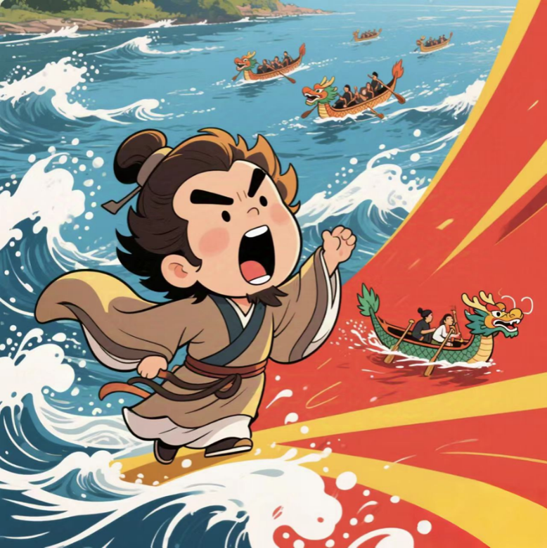 作品亮点:通过Python编程绘制了可爱的Q版屈原形象,并添加了粽子元素,代码简洁生动,形象憨态可掬,体现了传统节日与现代编程技术的结合。