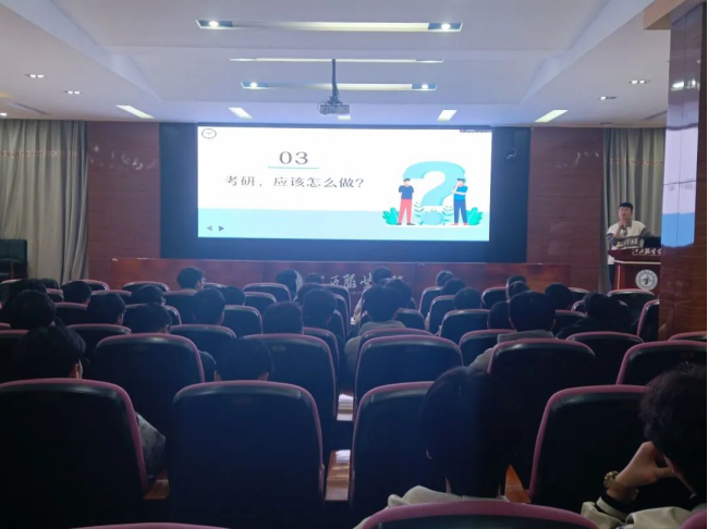 随后,王前坤老师也向在场的同学们分享了自己的考研经历希望能够让大家对考研有一个正确的态度,做好考研规划,充分利用课余时间开展考研准备。同学们也都纷纷提出自己的疑问,王老师也积极为同学们答疑解惑,与同学们进一步交流,指导同学们如何在考研前做好充分准备,燃起了我院学子们的考研热情。