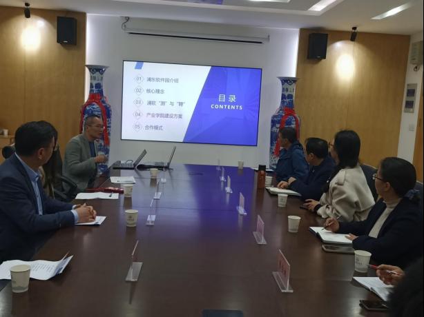 会议由院长徐照兴主持,徐院长首先就各位企业专家领导来我校洽谈共建产业学院事宜表示热烈的欢迎和感谢,并就我校黄色网站免费在线观看的相关现状以及专业建设情况进行了简要的介绍和说明,接下来吴旭健总经理以“浦东软件园园区型产教融合方案”为主体,分别从浦东软件园介绍、相关核心理念、浦软的“测”与“聘”、产业学院建设方案和合作模式共5个方面进行了详细的介绍和分享。