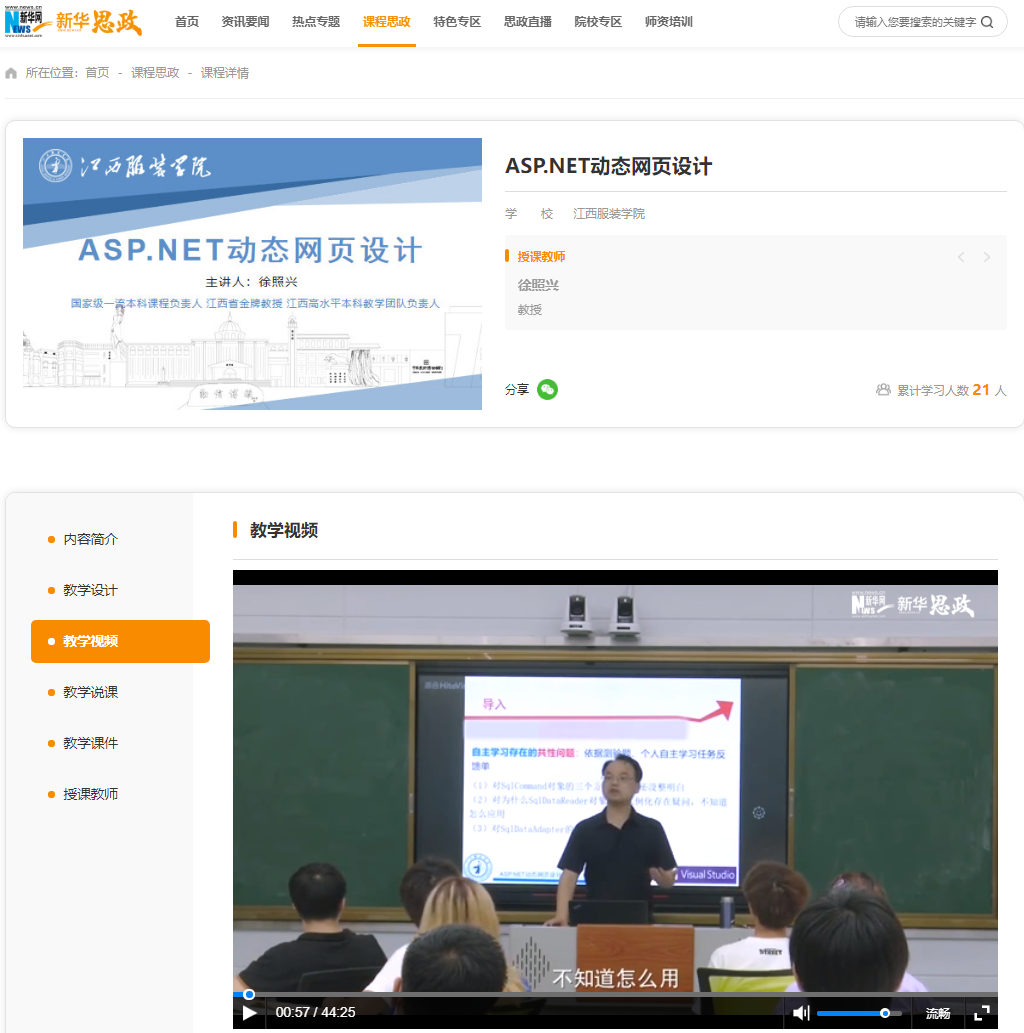 我校《ASP.NET动态网页设计》上线“新华思政”平台
