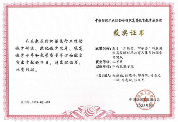 喜报||我院二项成果荣获“纺织之光”2023年度中国纺织工业联合会纺织高等教育教学成果奖